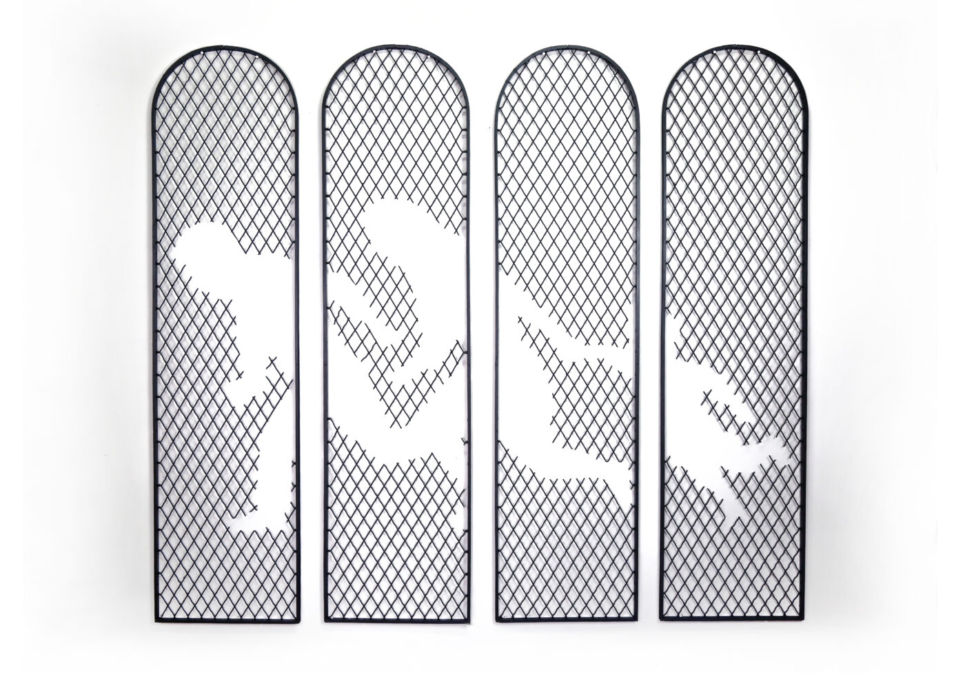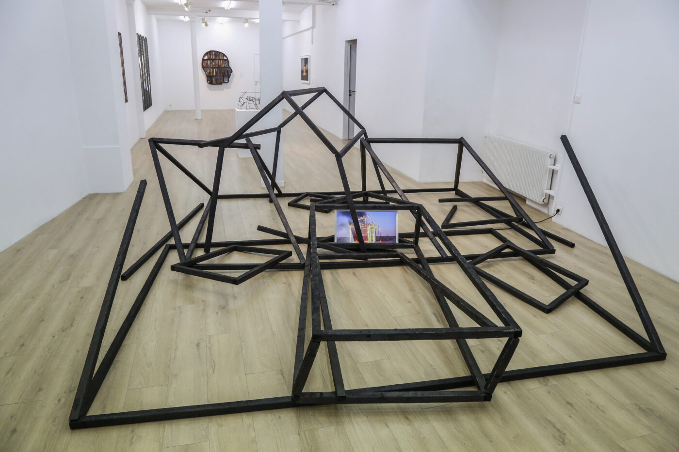 The exhibition brings together works shaped in steel, pieces created from fencing materials, paintings made using a custom tool developed by the artists, and a video installation titled What Will Remain If We Don’t Act. This installation presents the skeletal outline of a home destroyed by climate-driven disasters – storms, floods, and extreme conditions fueled by rising methane levels in the atmosphere. It speaks to the consequences of political denial, capitalist excess, and the greed that continues to push our planet toward irreversible change.